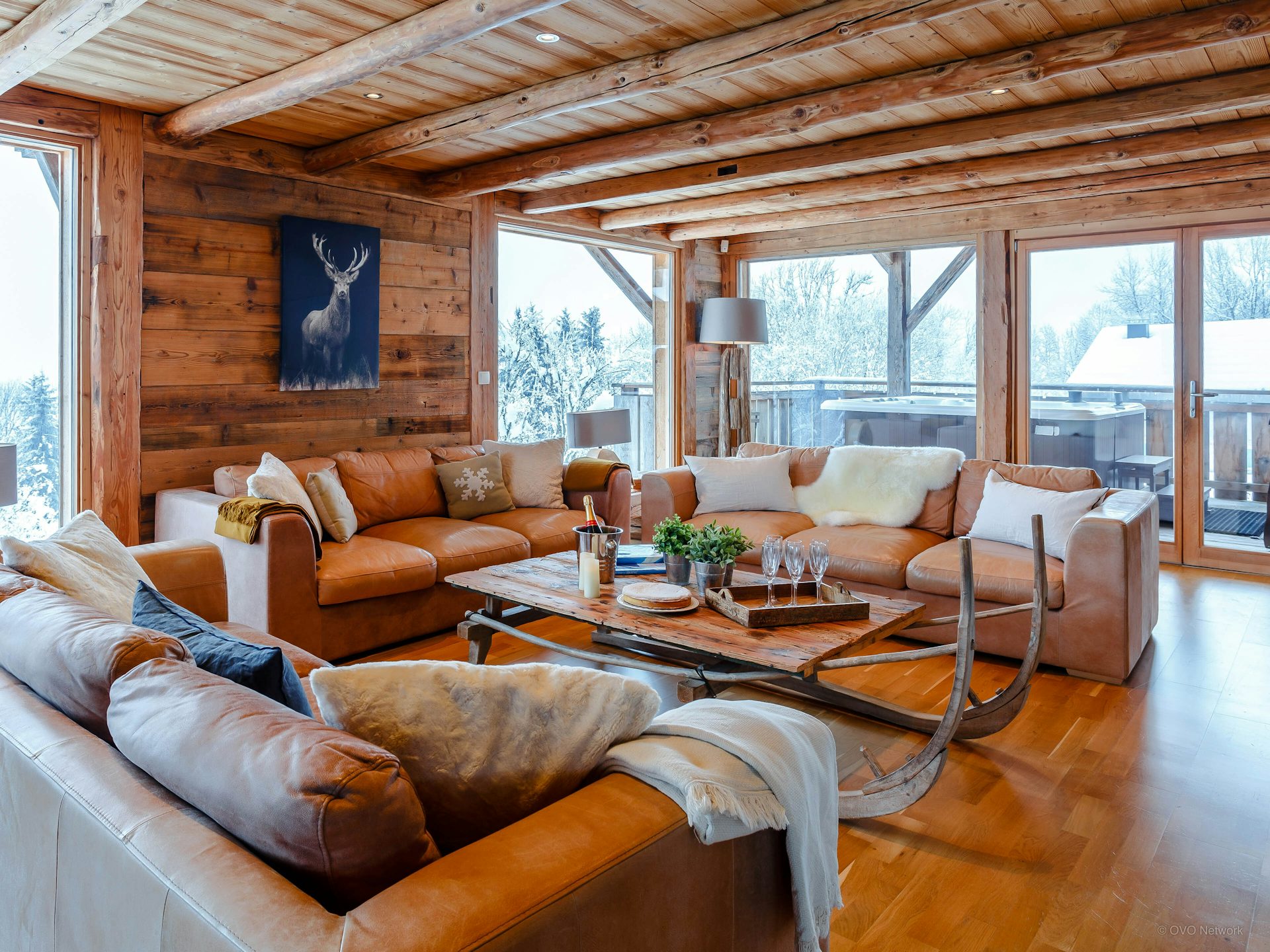 Traditional style and modern comfort combine at this chalet with summer pool and great views.