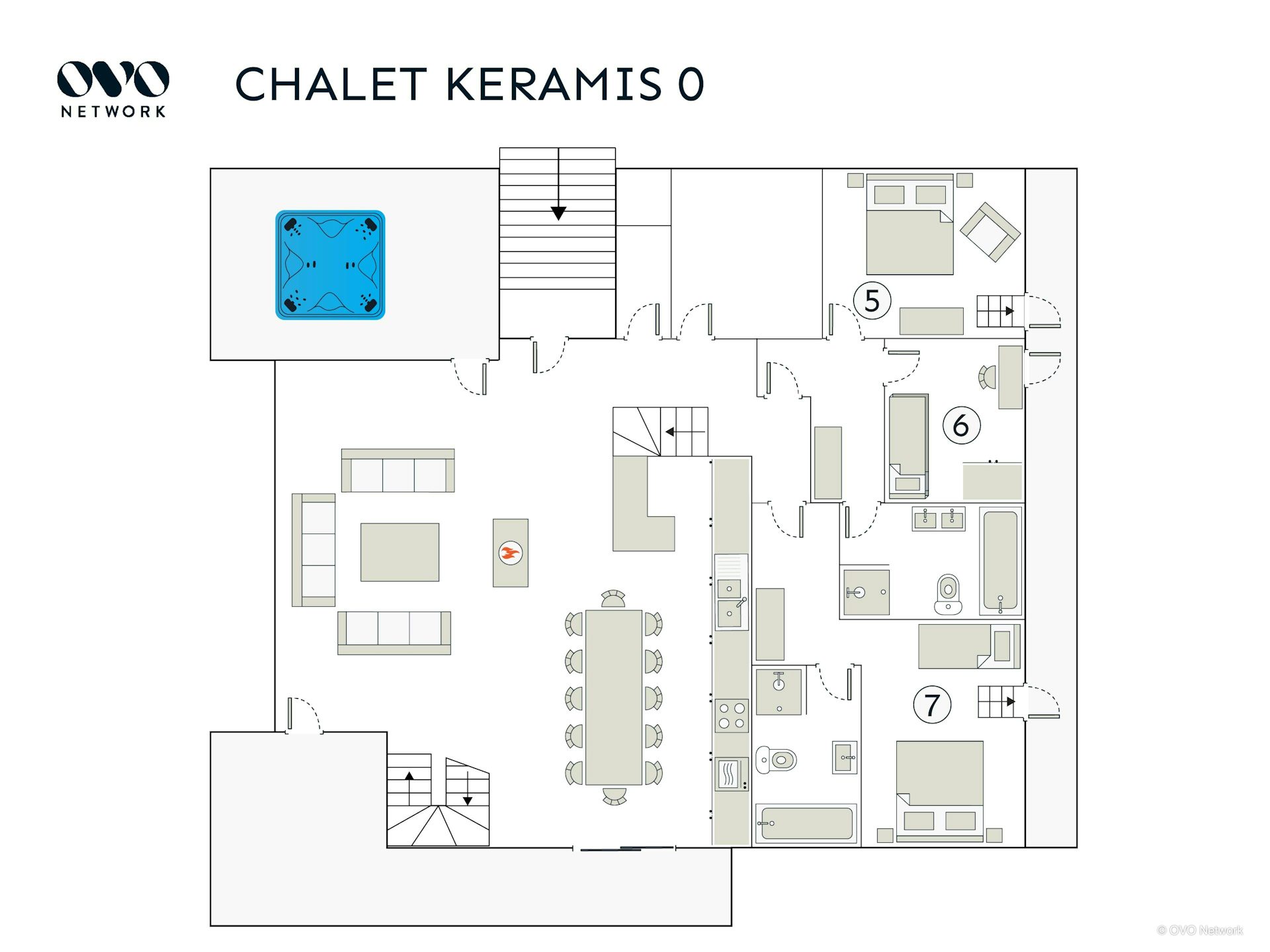 Hot tub and terraces
