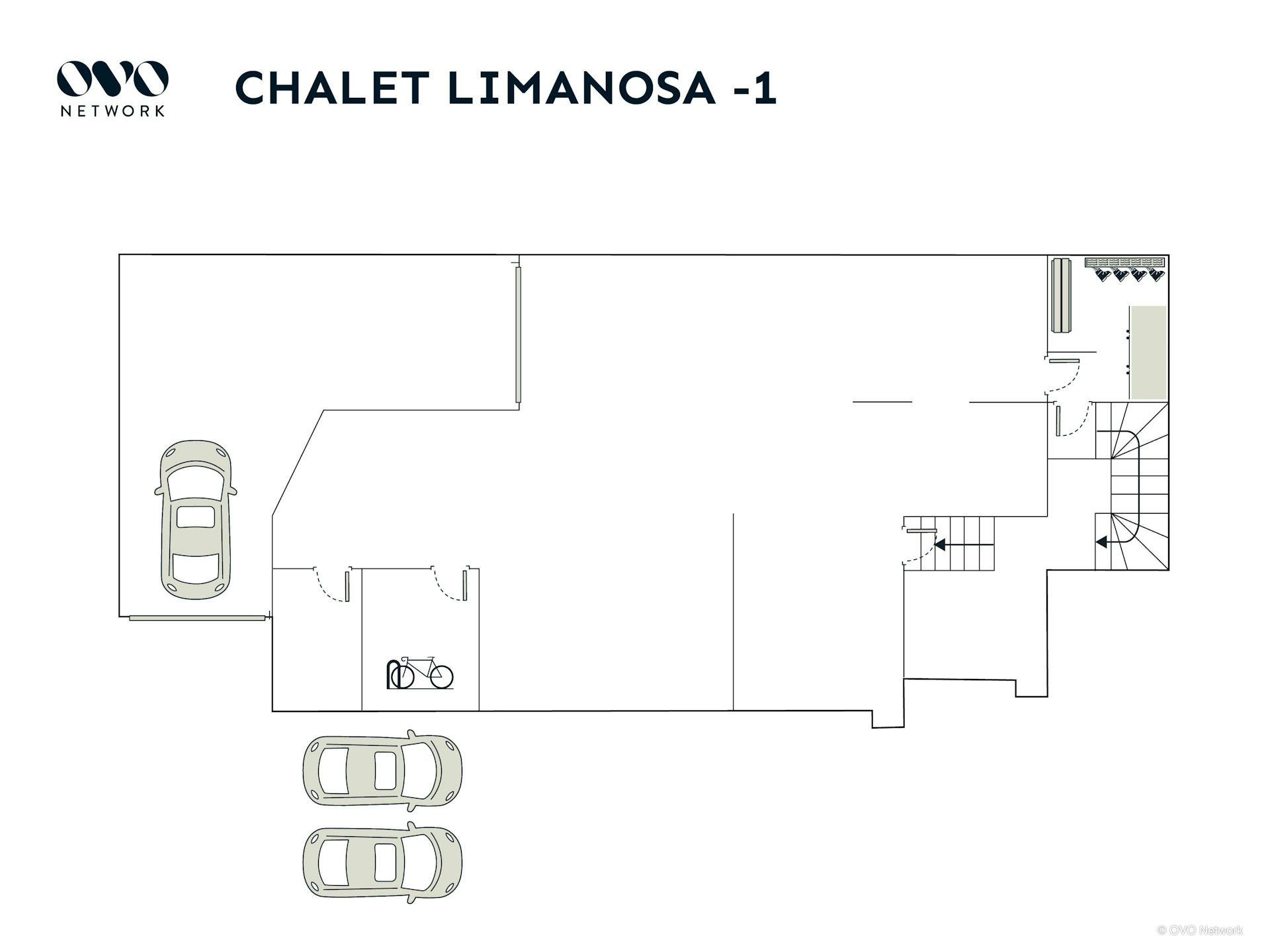 The lower ground floor is shared with the adjoining Chalet Kintana – if you are looking for more accommodation, why not book the two together for groups of up to 28? On this floor, you'll find an indoor swimming pool (3m x 4m), a sauna with a shower, and laundry rooms for each property, equipped with a washing machine and a tumble dryer.