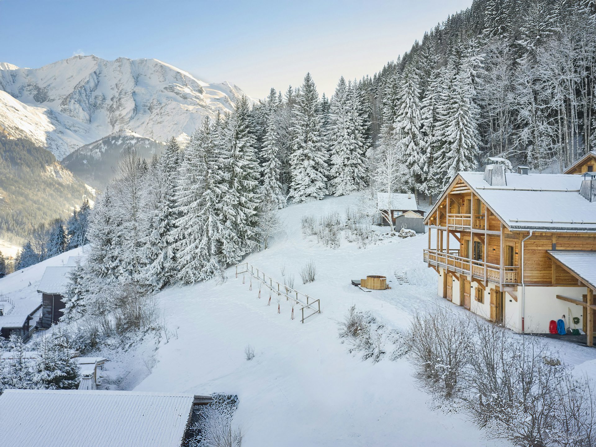 Chalet Piccolo, in Saint-Nicolas-de-Véroce, is a three-storey, detached chalet for up to 14 guests (max 10 adults and 4 children), with six bedrooms, each with their own shower or bathroom.