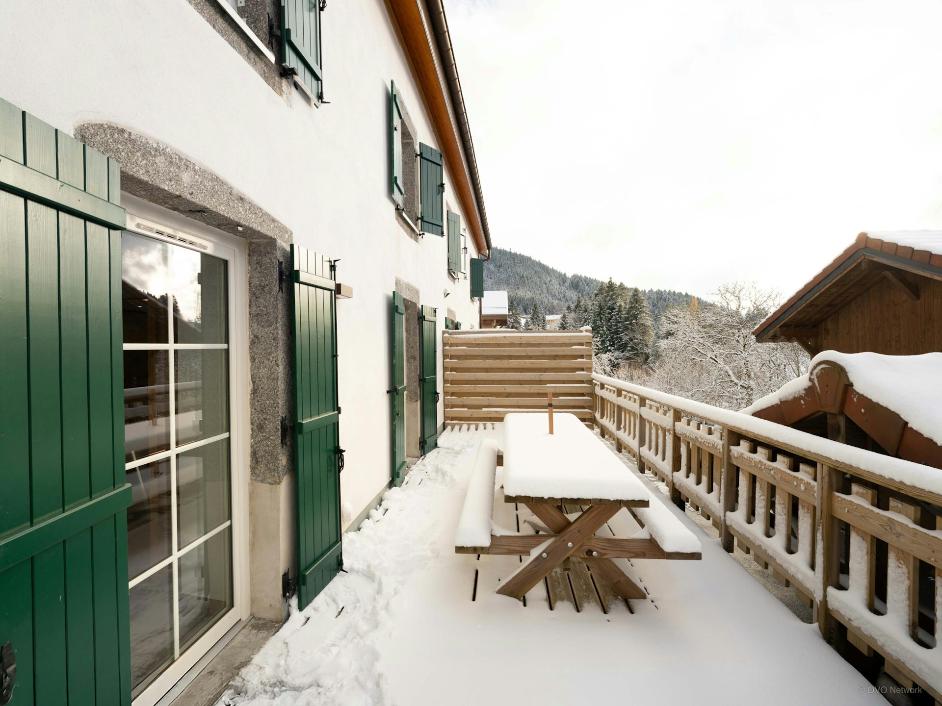 Luxury ski chalet next to piste, with hot tub and terrace.